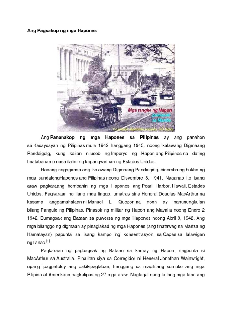 Ap 6 Ang Pananakop Ng Mga Hapones Sa Pilipinas Pdf Document