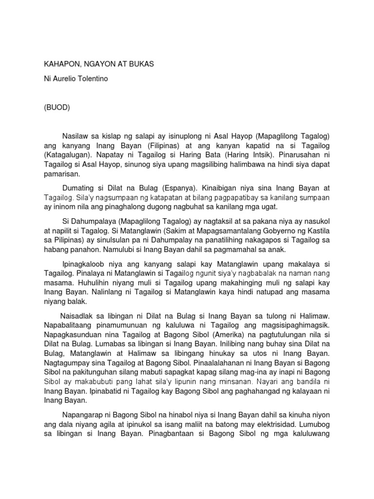 A Past Revisited by Renato Constantino The Philippines. 2482010 kahapon ngayon at bukas ni aurelio tolentino dula ng himagsikan mga tauhan inangbayan pilipinas dilat na bulag espanya bagongsibol amerika masunurin babaing pilipina tagailogang katagalugan matanglawin gobyerno ng kastila malaynatin gobyernong amerikano. First is the Summary of Kahapon Ngayon at Bukas by Aurelio Tolentino Si Asal Hayop mapaglilong tagalo ay nagtaksil sa kanyang ina at kapatid dahil sa salapi.