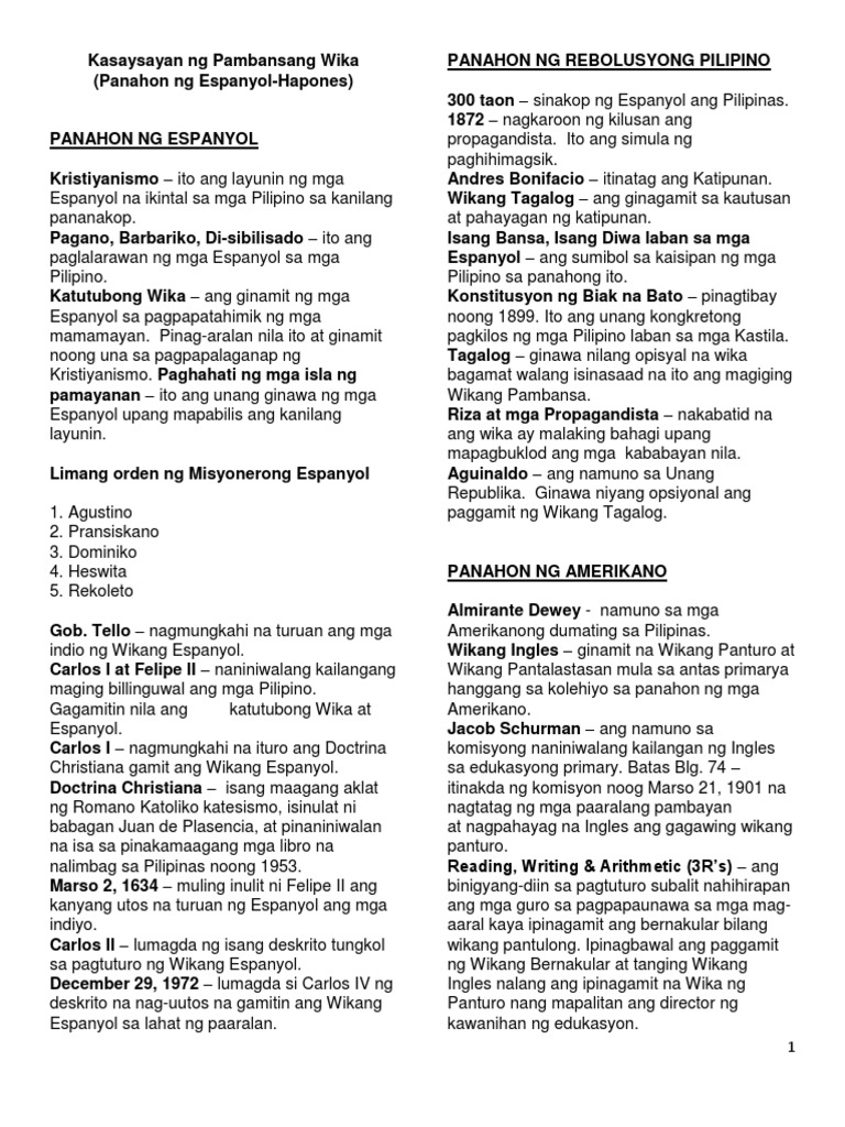 Doc Module 1 Kasaysayan Ng Pambansang Wika Panahon Ng Espanyol At Panahon Ng Amerikano Ronell Mendoza Academia Edu